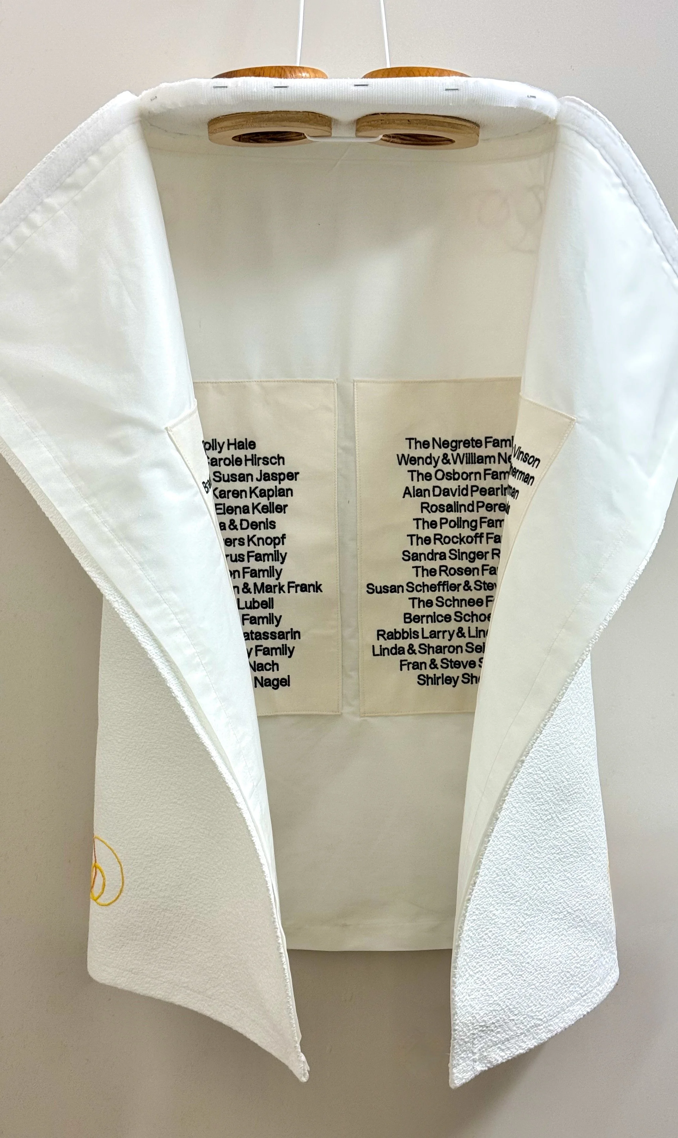 “This mantle is more than fabric. It is a statement: we are bound together, we carry one another, we protect what is sacred at our core. As Torah has always been part of the fabric of our people, so now this fabric has become part of our Torah and our sacred community.”