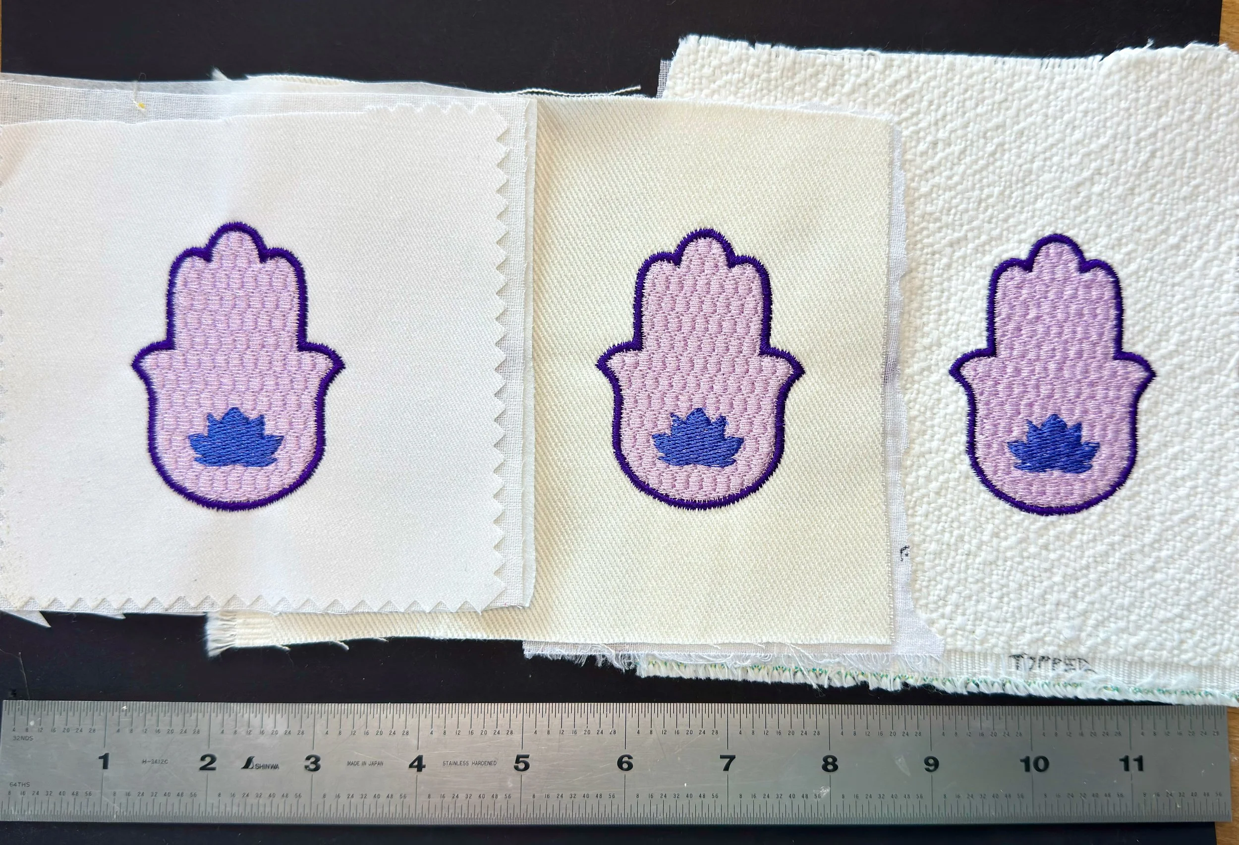 By July, the embroidery was underway. We kept in touch with progress photos, ensuring that each detail felt right. One of the most meaningful steps came in August, when the names of the donors were added to the mantle’s liner. We tested fonts, refined the layout, and secured approval for the final inscription—literally weaving the community into the fabric of the Torah cover.